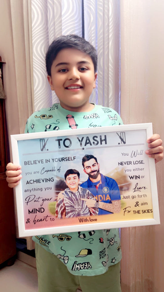 Cricket Champ with Virat Kohli Personalized Portrait (Framed)