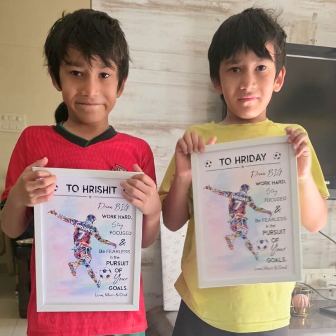 Inspire passion and determination with this football themed motivational decor, capturing the energy of a powerful free kick, customized with name and uplifting messages.